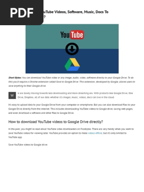 How To Download Youtube Videos Software Music Docs To Google Drive Directly Pdf You Tube Software from imgv2-2-f.scribdassets.com Google drive is useful for automatically backing up and syncing files, sharing photos, creating documents with google docs, sheets or slides, and collaborating with others on those documents. Locate the file in google drive. On the saved file click on the three buttons. You can usually do this by double clicking the.zip. Google drive can also be used to store your music for access from multiple devices, and there are a few ways to upload and play. Oct 08, 2020 · save your time from downloading music to your computer as our software will help you listen to your favorite songs from google drive. For multiple files, hold shift. Swipe to choose 'import with drive".