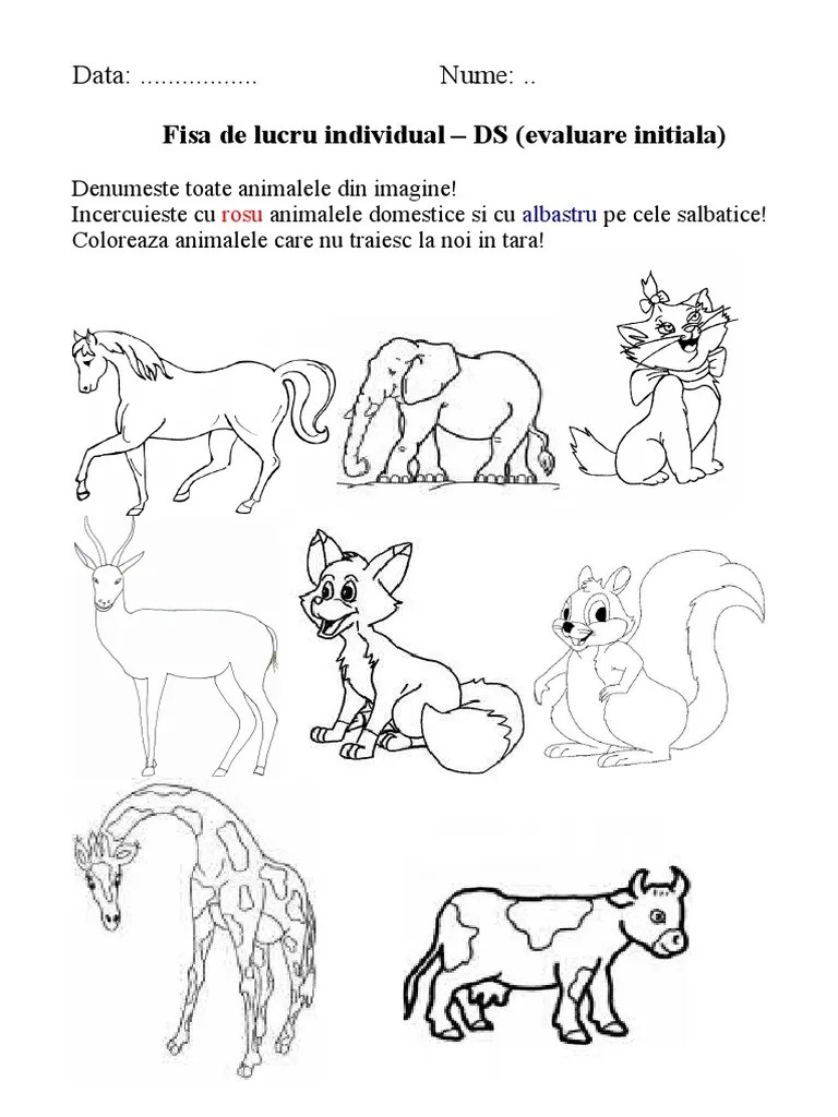 Animale de colorat, animale domestice, animale salbattice, ds, fise, fise de lucru, fise .